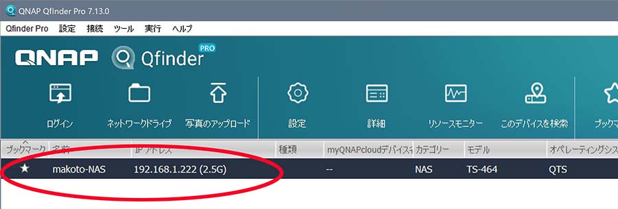 → Qfinder Proダウンロードページ(公式) https://www.qnap.com/ja-jp/software/qfinder-pro