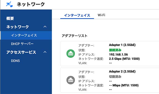 TS-464−8Gには2.5GbEイーサーネットが2ポートついているので、試しにポートトランキングを設定してみることにした。