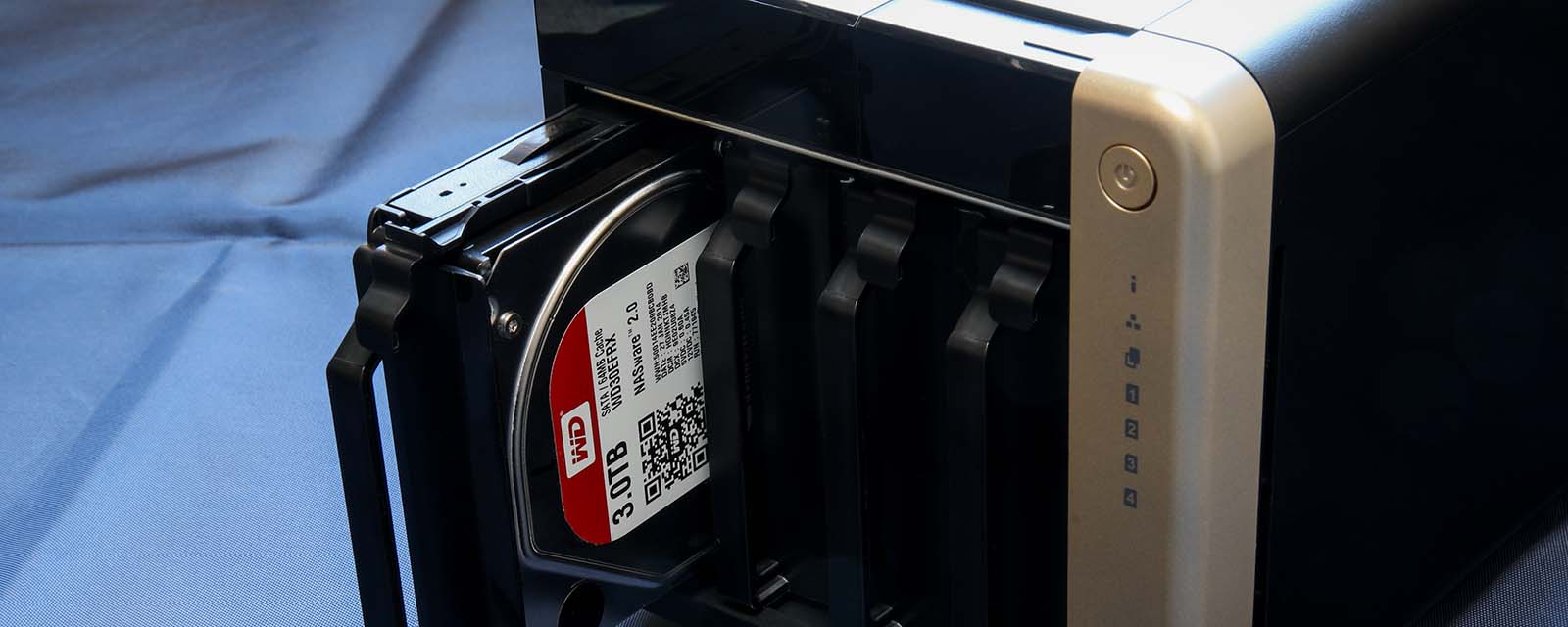 現在は3TB✕4をRAID5で運用していてまだ余裕は残っているが、QNAPのNASは運用中の容量拡張も簡単にできるので、将来を考えて6TB✕4に拡張したいところだ。